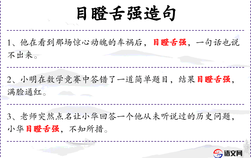 5. 【目瞪舌强】 形容因吃惊或害怕而发愣的样子。同“目瞪口呆”。