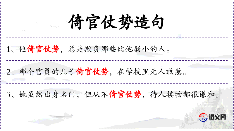 - 倚官仗势:仗势欺人、依仗权势。