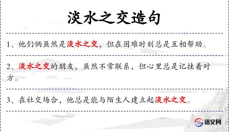 2. 【淡水之交】 - 友情像水一样清澈。指不以势利为基础的朋友。