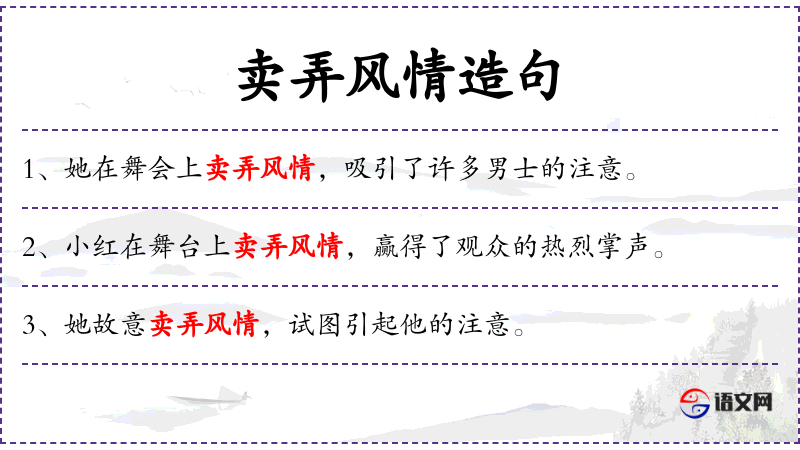 - 谓语:“卖弄风情”