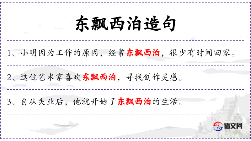 - 常常:副词,表示频率。 *. 东飘西泊:成语,形容四处奔波,不固定。