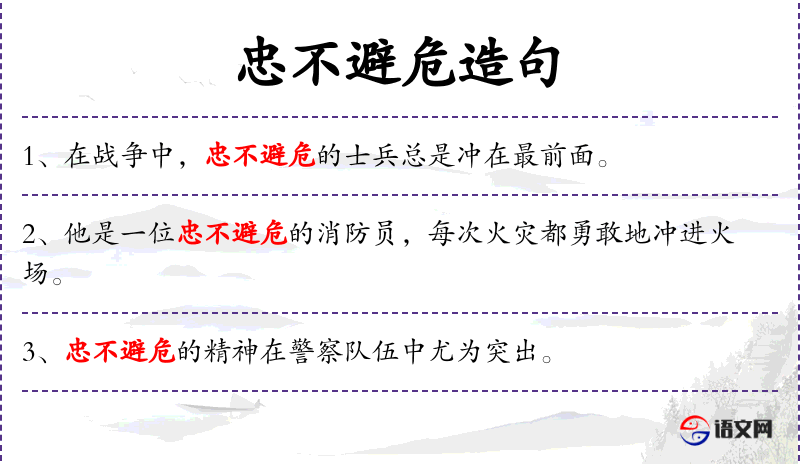 - 忠不避危地:副词短语,表示忠诚且不回避危险。