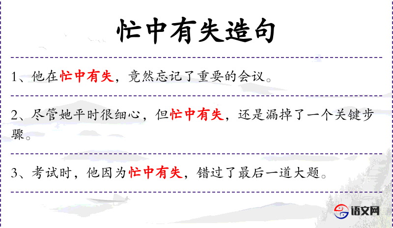 - 英文:强调了“忙中有失”和“遗失”的概念。