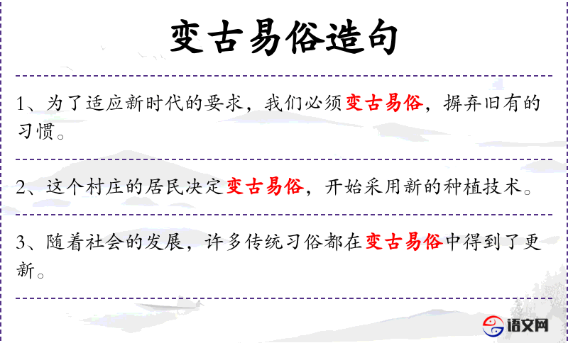- 变古易俗:改变传统的习俗或方式。