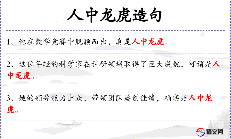 - 人中龙虎:这个成语源自**传统文化,比喻人中杰出的人物,常用于对有卓越成就的人的赞誉。