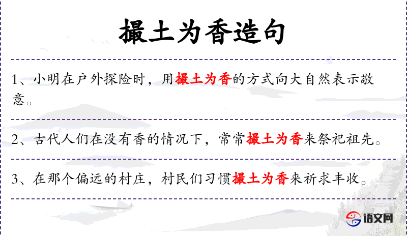 - 宾语:撮土为香来祈求丰收