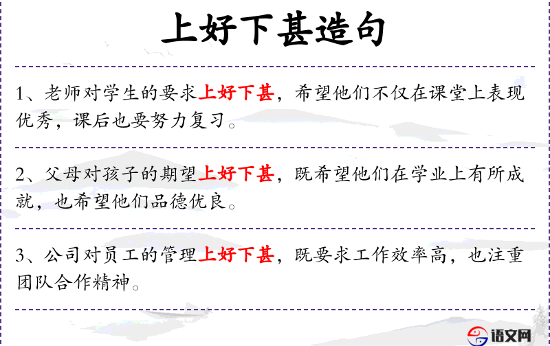 1. 【上好下甚】 - 上面的喜爱什么,下面的人就会对此爱好的更加利害。