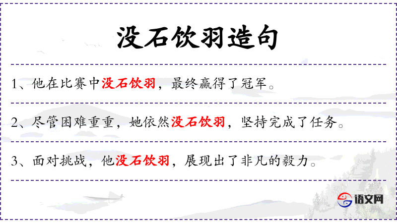 1. 【没石饮羽】 - 后用以喻指功力精湛。