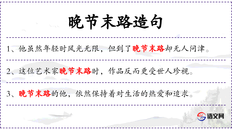1. 【晚节末路】 - 末世;一代将终之时。