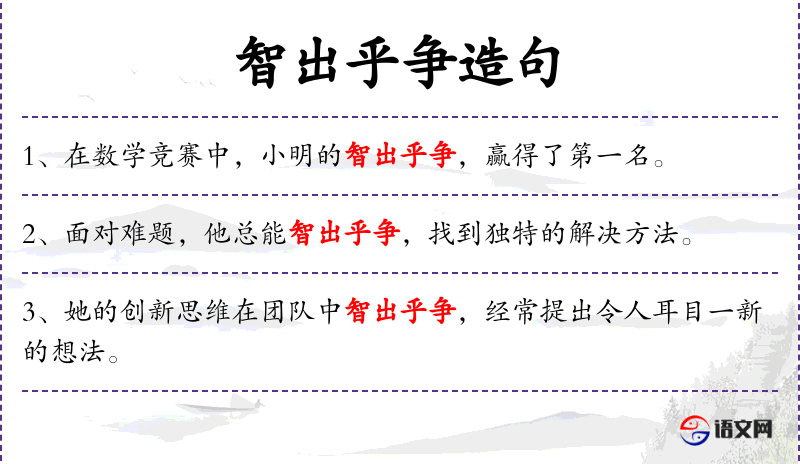 2. 【智出乎争】 - 争:斗争。聪明才智是在反复斗争中锻炼出来的。比喻智慧来源于实践。