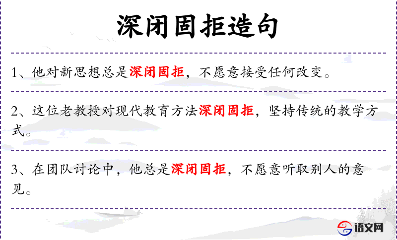 3. 【深闭固拒】 - 固:坚决;距:同“拒”,拒绝。形容坚决不接受别人的意见。