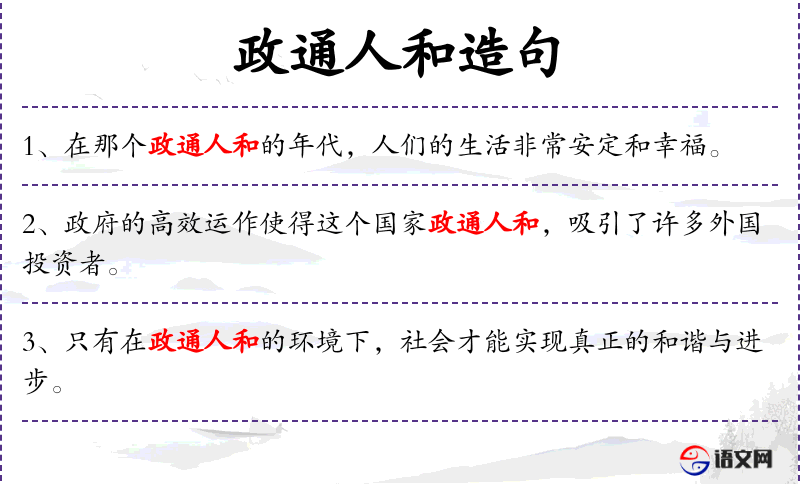 “政通人和”是一个成语,源自传统文化,强调政治清明和人民和睦。这个句子反映了人对良好政治环境的期望。