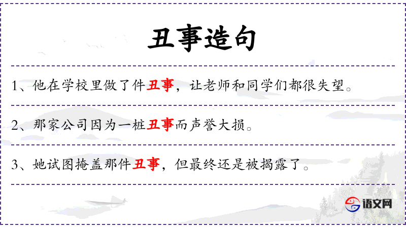 2. 【丑事】 - 不光彩的事;丑恶见不得人的事。