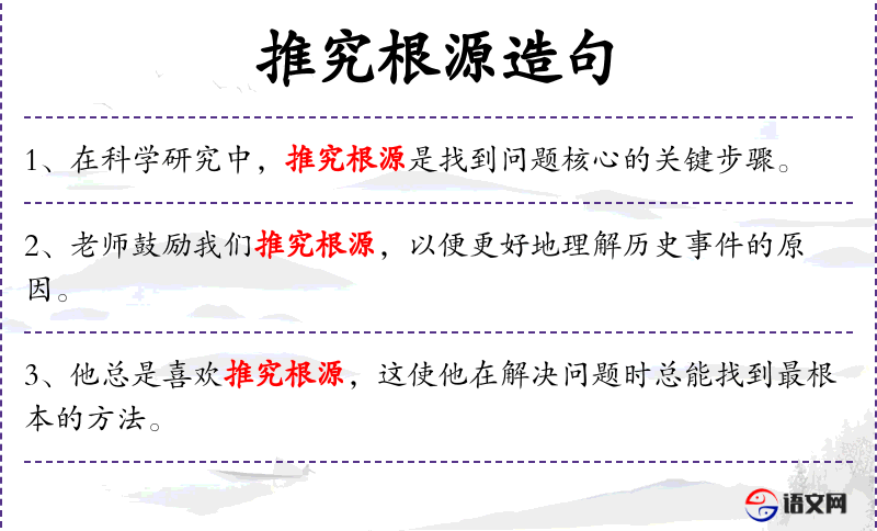 - 相关成语:“探本溯源”(探究事物的根本来源)、“寻根究底”(深入探究事物的根源)。