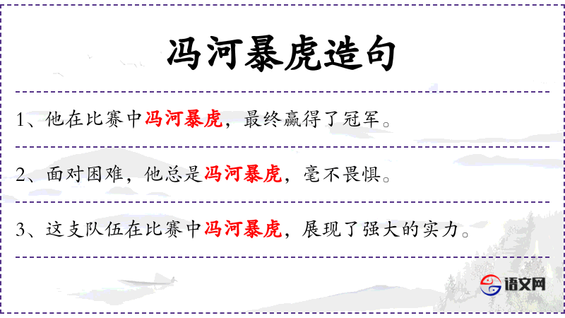 - 谓语:冯河暴虎,脱颖而出