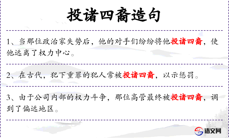 - 投诸四裔:这个成语字面意思是“投放到四方边远之地”,在这里比喻性地指将某人调离核心岗位,放到边缘或不重要的位置。