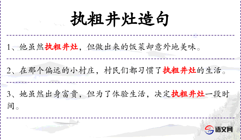 - 宾语:执粗井灶的生活