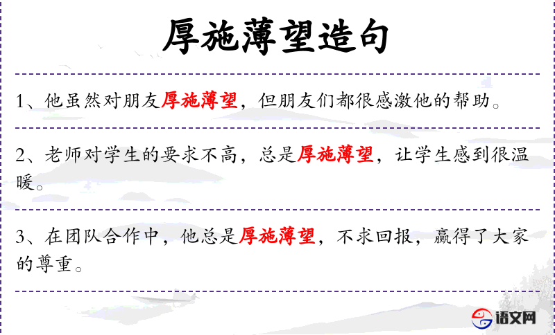 - *厚施望**:这个词组意味着给予很多帮助但期望回报很少。