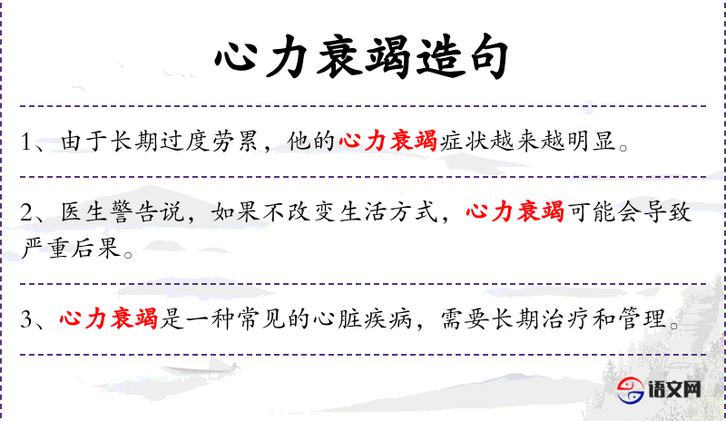 - 心力衰竭:指心脏泵血功能减弱,无法满足身体需求。