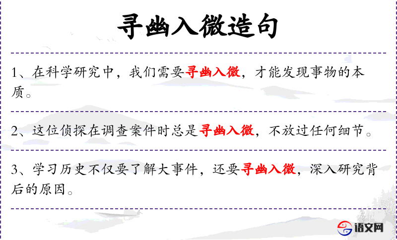 - 寻幽入微:这个词组意味着深入探索细节,特别是在艺术创作中,强调对细节的关注和理解。