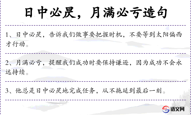- 日中必昃:成语,意为太阳升到最高点后必然会西斜,比喻事物发展到一定程度必然会有所下降。