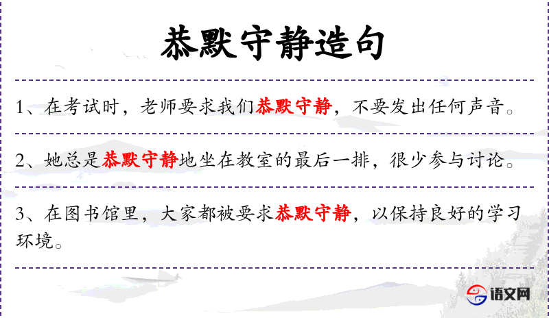 - 恭默守静:成语,形容人在公共场合保持沉默和安静。
