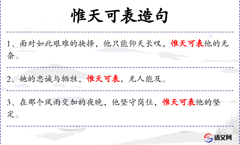 - 惟天可表:只有天可以证明,表示非常坚定或忠诚。