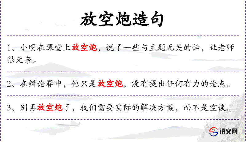 - 英文:The teacher reminds the students that when writing essays, they should not "fire empty shots" and every sentence should have substance.