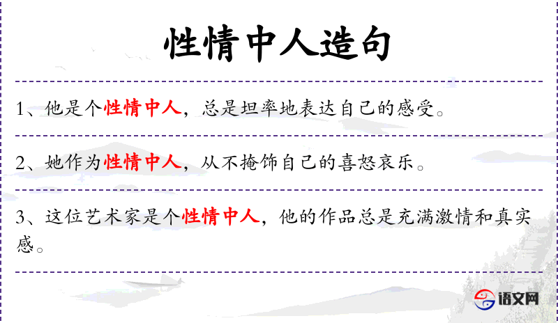 - 性情中人:指具有鲜明个性和情感的人。