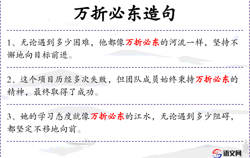 - 万折必东:成语,意为无论遇到多少困难,最终都会成功。