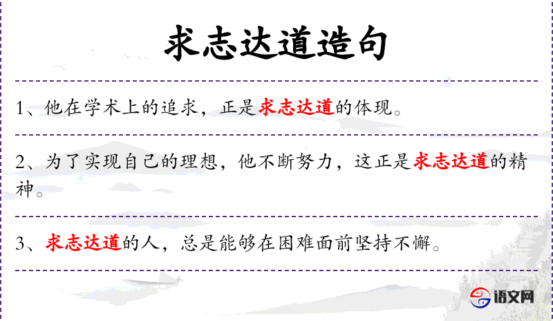 2. 【求志达道】 - 指隐居以保全自己的意志,行义以贯彻自己的主张。是儒家一种理想的人生观。