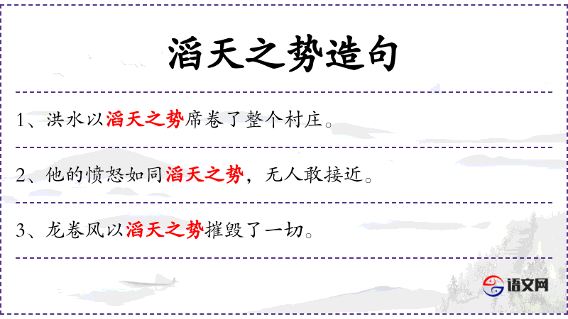1. 【滔天之势】 - 滔天:漫天。形容势力极大。
