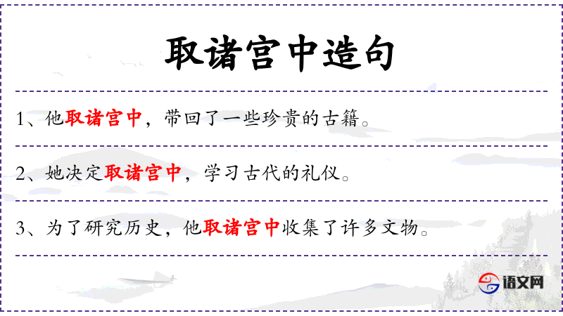 1. 【取诸宫中】 宫,古代对房屋的通称。后指取用于自己家中,极言其便利。