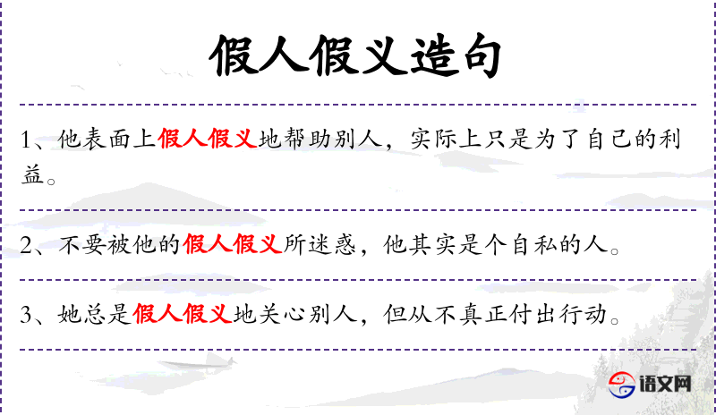 - 假人假义:指虚伪的行为或态度。
