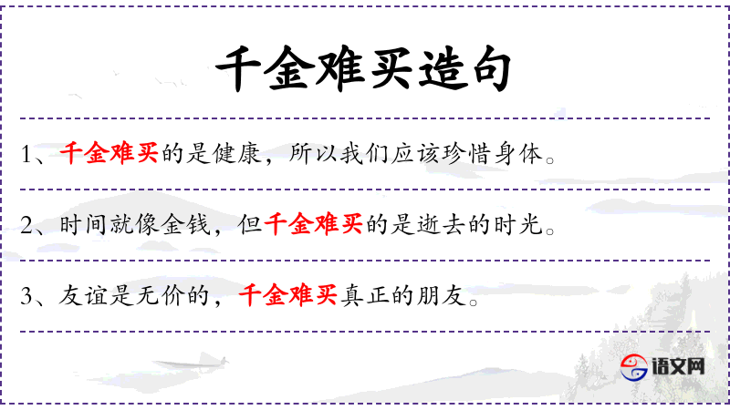 - 千金难买:这个成语源自**古代,强调某些东西的价值无法用金钱衡量。