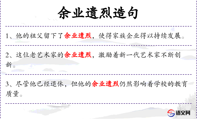 1. 【余业遗烈】 遗留下来的事业与功绩。