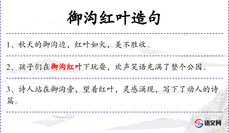 句子:“御沟红叶的景象,让人不禁想起那句“停车坐爱枫林晚”。”