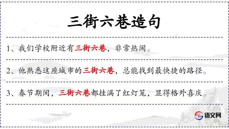 1. 【三街六巷】 - 泛指大街小巷。