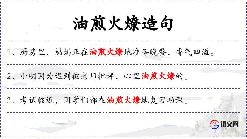 4. 【油煎火燎】 - 形容痛苦或焦灼。