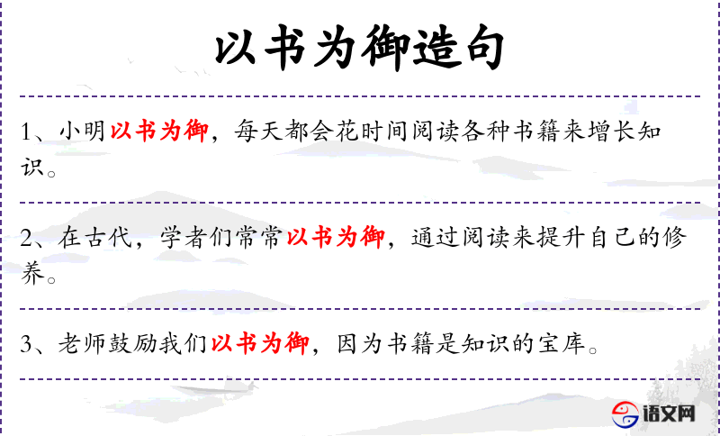 句子:“图书馆是学*的好地方,我们可以以书为御,汲取知识。”