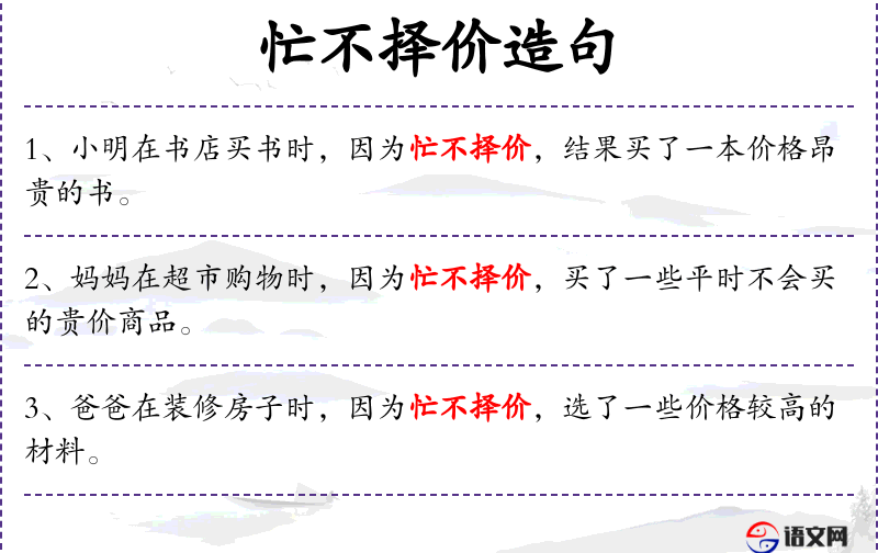 - 不择价:不考虑价格,可能意味着匆忙或不在乎价格。