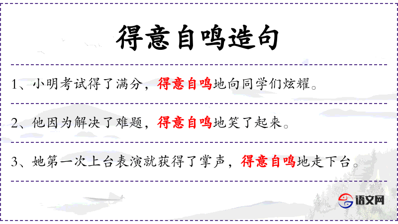 - 得意:形容词,表示因成功或优势而感到高兴和自豪。