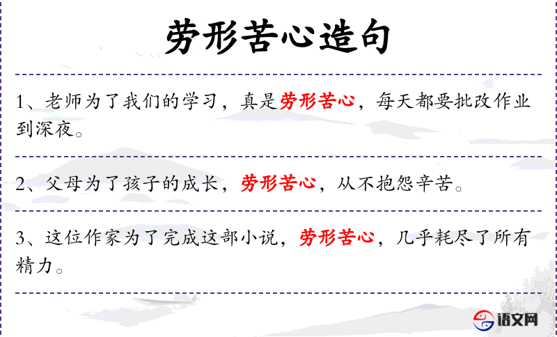 句子:“老师为了提高学生的成绩,劳形苦心,不断寻找新的教学方法。”