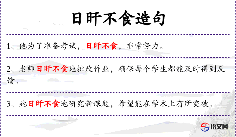 - 日旰不食:成语,意思是白天到晚上都不吃饭,形容非常勤奋或忙碌。
