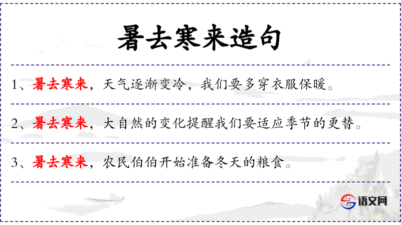 3. 【暑去寒来】 - 盛夏已过,寒冬将至。泛指时光流逝。