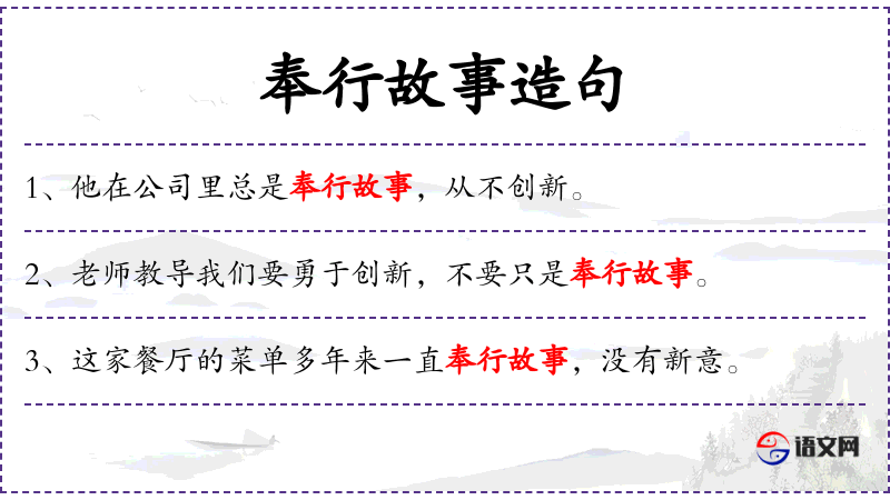 1. 【奉行故事】 奉行:遵照办理;故事:老规矩、老章程。按照老规矩办事。