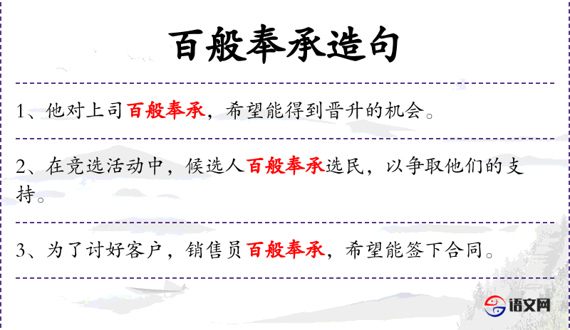 1. 【百般奉承】 - 用各种方式来恭维讨好人。
