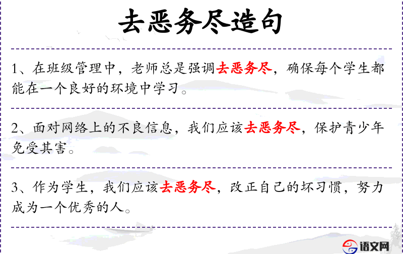 - 相关成语:“去恶务尽”源自**传统文化,强调彻底消除不良行为。