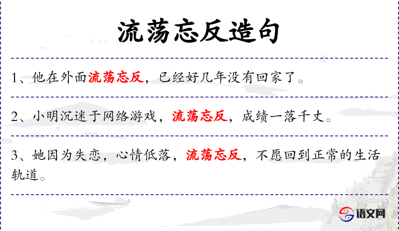 3. 【流荡忘反】 - 流荡:流浪;反:同“返”,回家。指长期在外面飘泊而不知返回。