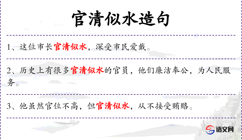 句子:“官清似水的形象,是人民对好官员的期望。”